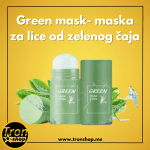 Green mask- Potpuno prirodna maska-stik na bazi zelenog čaja, pomaže u skidanju mrlja, sprečava izbijanje mitisera i održava kožu glatkom. Odlična detoksikacijska za vaše lice, savršeno izvlači nečistoće iz začepljenih pora i ostavlja vam gladak ten.