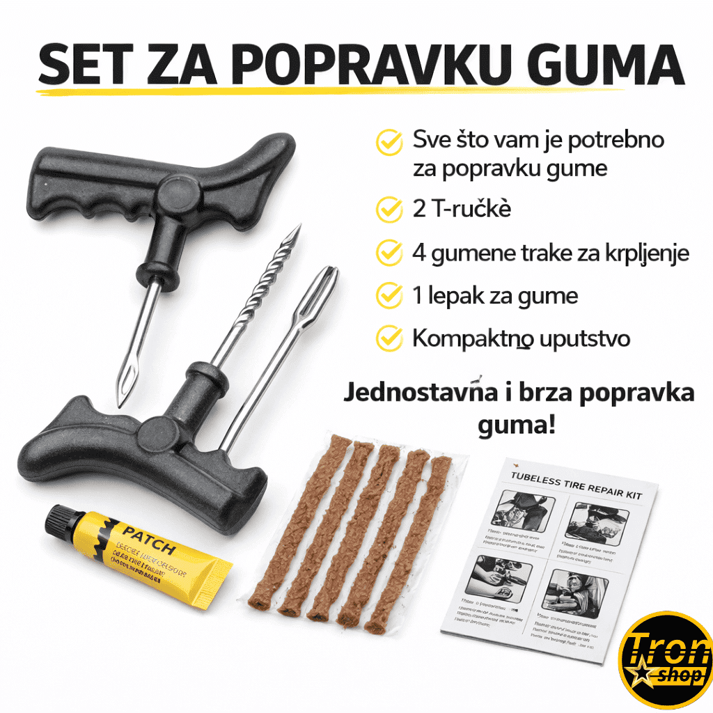 Set za popravku guma je idealan za brzo i jednostavno rešavanje problema sa probušenim tubeless gumama. Bilo da se nalazite na putu, na biciklu, ili koristite motor, ovaj komplet omogućava brzu i efikasnu popravku bez potrebe za posebnim alatima ili servisom. Savršen je za hitne situacije i sigurno će vas spasiti u trenucima kada je to najpotrebnije.