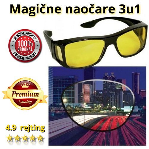 Magične naočare 3 u 1 koje imaju visoku optičku preciznost i sposobnost protiv jake svjetlosti, koja pruža veliku vidljivost na suncu i noću. Imate mogućnost da mijenjate okvire po vašoj želji. Okviri sa magnetnima jako se brzo mijenjaju. Od sada ne morate više nositi nekoliko para naočara sa sobom. Magične naočare su sjajna kombinacija dnevnih i noćnih stakala u kombinaciji sa stilskim okvirom.