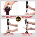 Električni Otvarač vina 100% profesionalan izuzetno praktičan, veoma lak za upotrebu. Uvijek na dohvat ruke. Možete ga nositi na putovanjima. Ovaj otvarač za vino je idealan za poklon!
