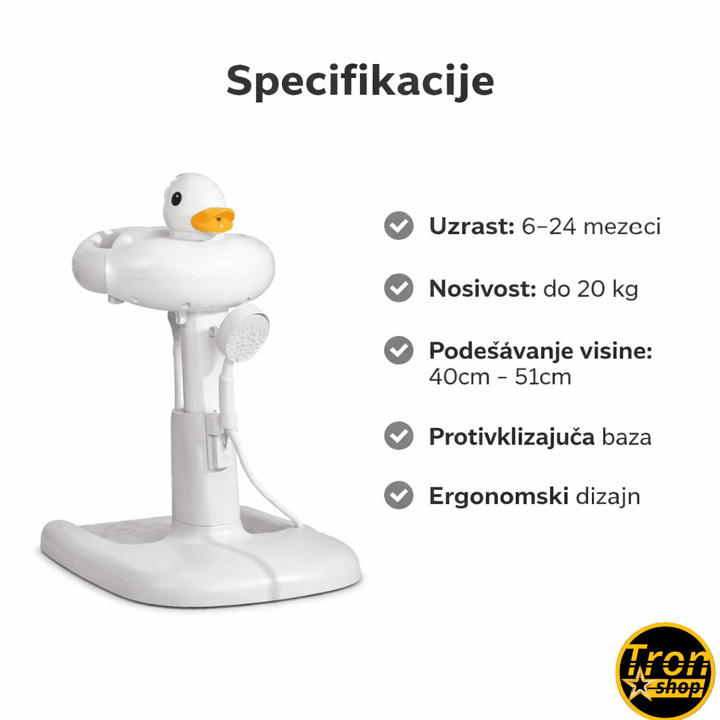 Podesivi stalak za kupanje beba u obliku patkice predstavlja savršen način da učinite kupanje vaše bebe sigurnim i prijatnim iskustvom. Bez stresa i briga, ovaj proizvod nudi roditeljima praktično rešenje za svakodnevnu negu svoje bebe.