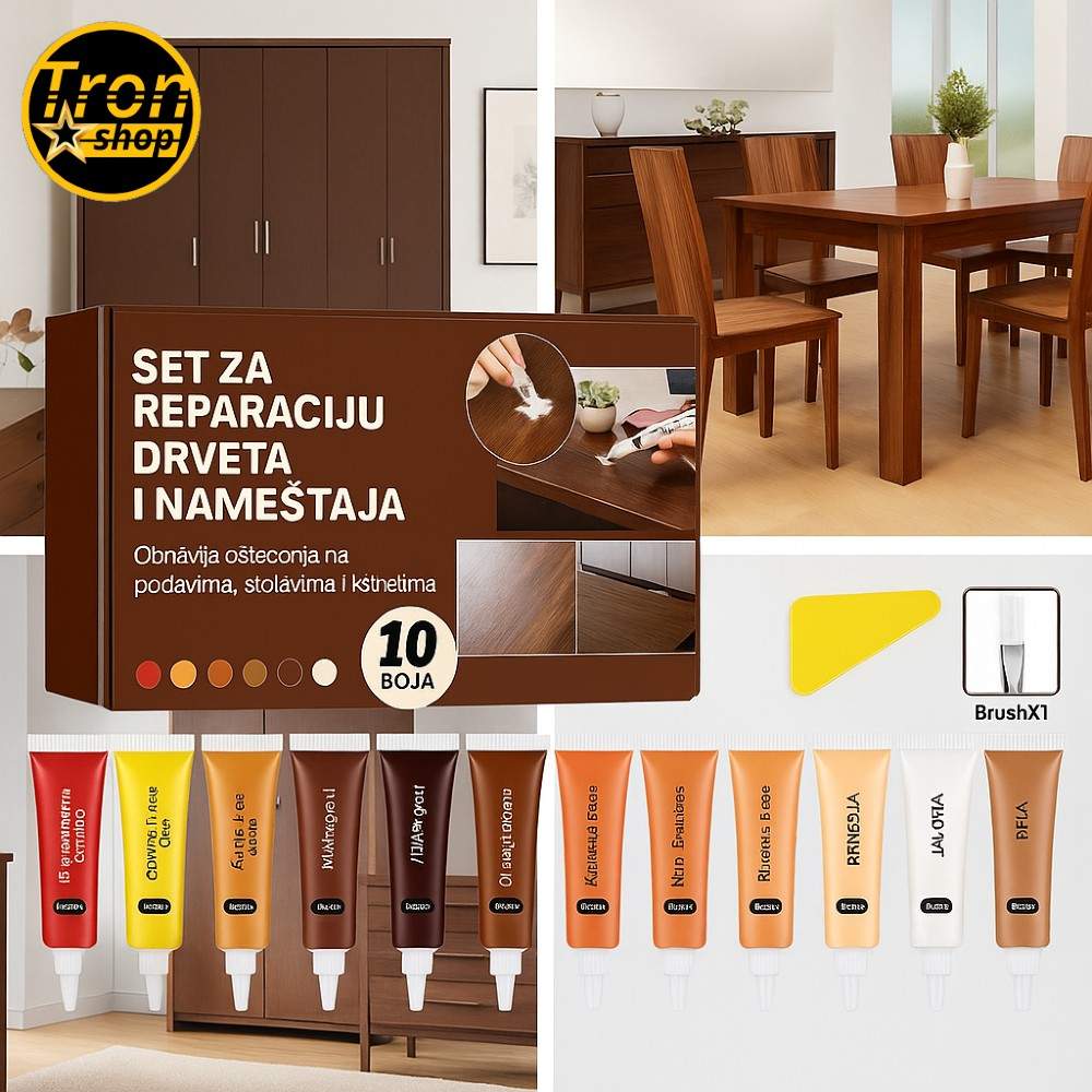 Ako su vaš drveni nameštaj, vrata ili podovi oštećeni, izgrebani ili imaju pukotine – ovaj set je savršeno rešenje.