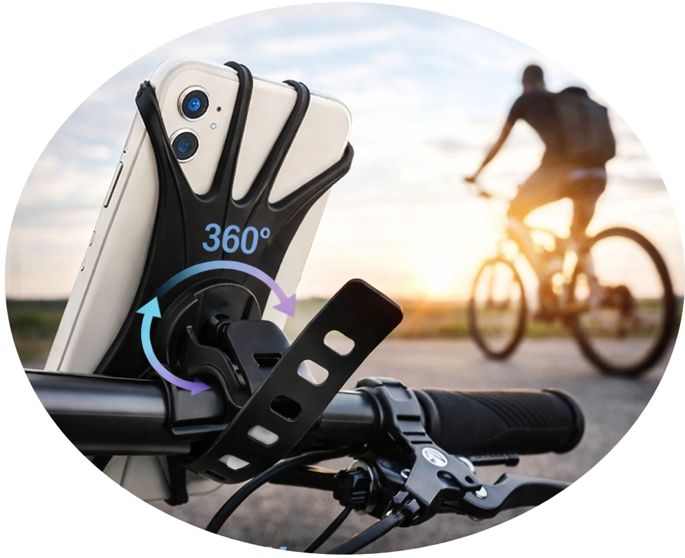 Ovaj silikonski 360° rotirajući držač za mobilni telefon predstavlja savršeno rešenje za sigurno i praktično korišćenje telefona tokom vožnje bicikla, šetnje sa bebi kolicima ili vožnje skutera. Napravljen od fleksibilnog i izdržljivog silikona, pruža čvrsto držanje telefona bez klizanja, čak i na neravnom terenu.
